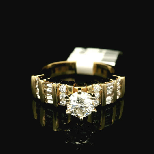 Yellow Gold Multi-Diamond Ring with a Round Brilliant Cut Diamond